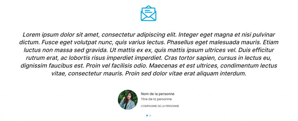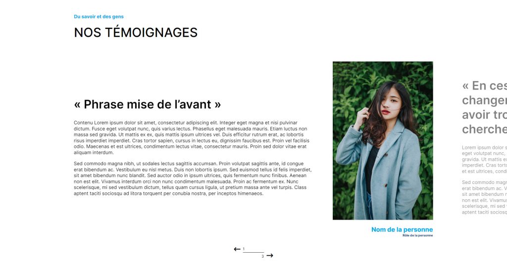 Carrousel de témoignages affichés en bulles.